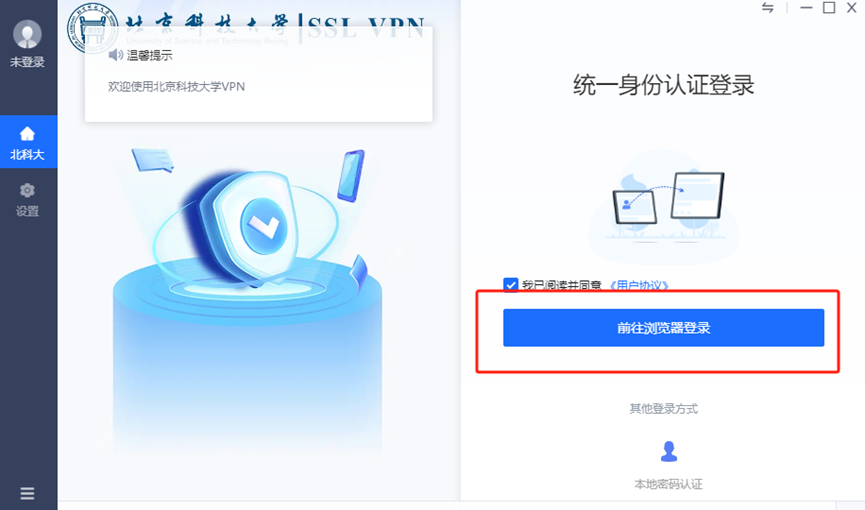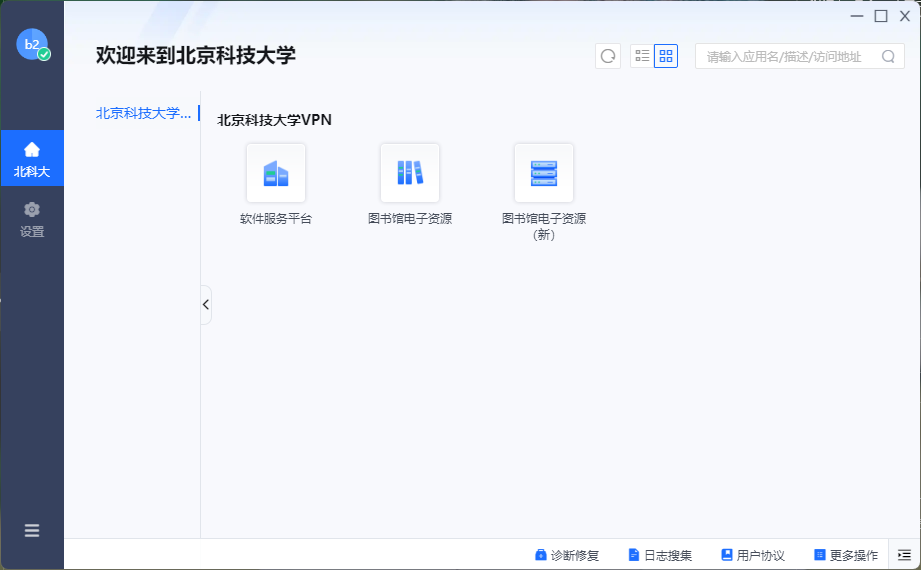 VPN 客户端在校外给师生开了个“校园网分身”。打开它,可在校外便捷进行激活正版软件、使用图书馆资源等操作,也可通过浏览器直接访问校内*.ustb.edu.cn后缀网站。校外无缝衔接校内业务系统,资源一键直达。
