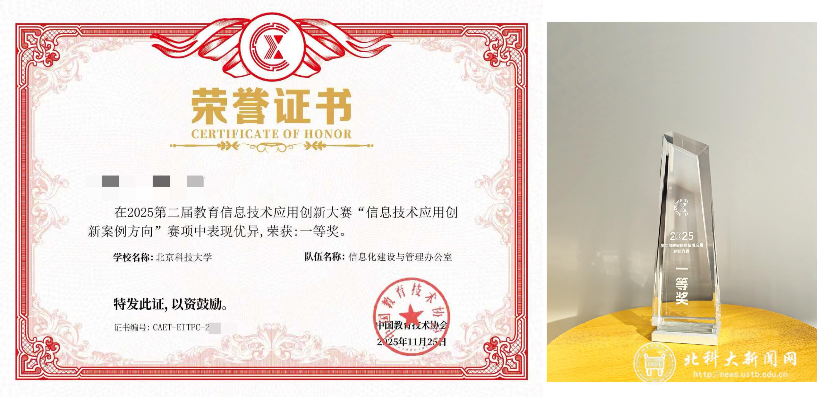近日,第二届教育信息技术应用创新大赛全国总决赛在浙江大学举办。我校信息化建设与管理办公室雷雪梅、杨旭、张琦老师组队申报的“网络基础设施物联管理平台”项目再创佳绩,凭借在信创领域的扎实实践与显著成效,在应用创新案例赛决赛中斩获全国一等奖。此前,在区域赛阶段,信息办参赛队伍是以华北赛区一等奖的荣誉晋级全国总决赛。这一荣誉不仅彰显了学校教育数字化转型的显著成效,更充分体现了北科大人以科技赋能教育、扎实推进智慧校园建设的责任担当与实践成果。